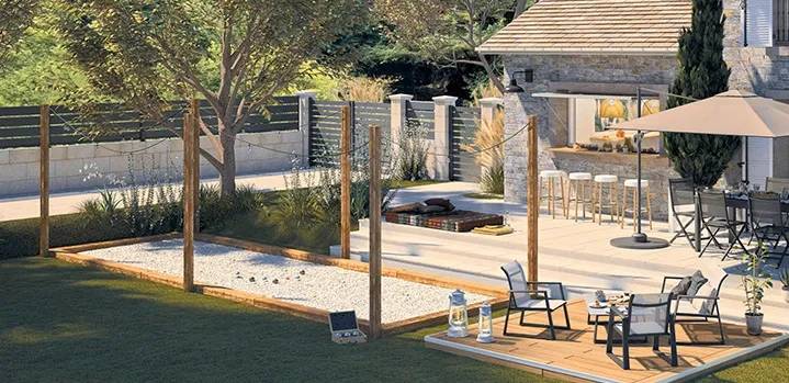 Le jardin doit être un espace harmonieux et accueillant, favorisant la détente et la connexion avec la nature. Clôtures, portails, terrasses, bardages, éclairages et même kits pour créer votre terrain de pétanque... Avec Gedimat, faites fleurir vos idées !